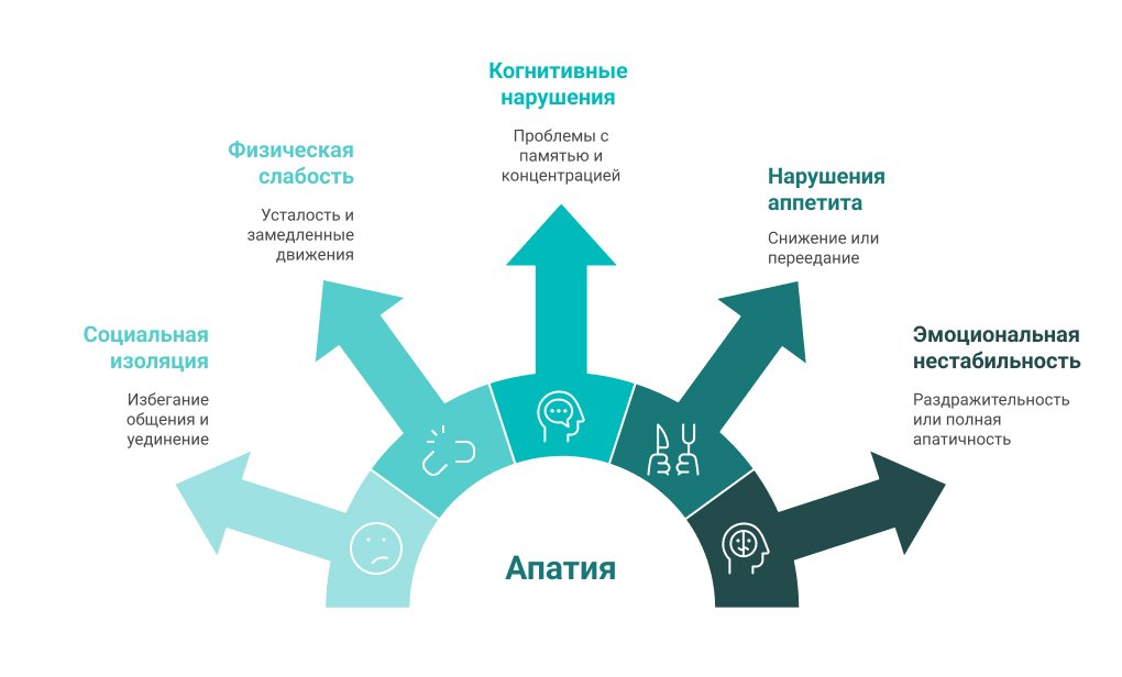 Дифференциальная диагностика и коррекция: Важно отличить апатию как черту характера от апатического синдрома при депрессии, шизофрении или органических поражениях ЦНС. Лечение фокусируется на нейрометаболической стимуляции и когнитивной активации, направленной на «перезапуск» системы вознаграждения и восстановление эмоционального резонанса.
